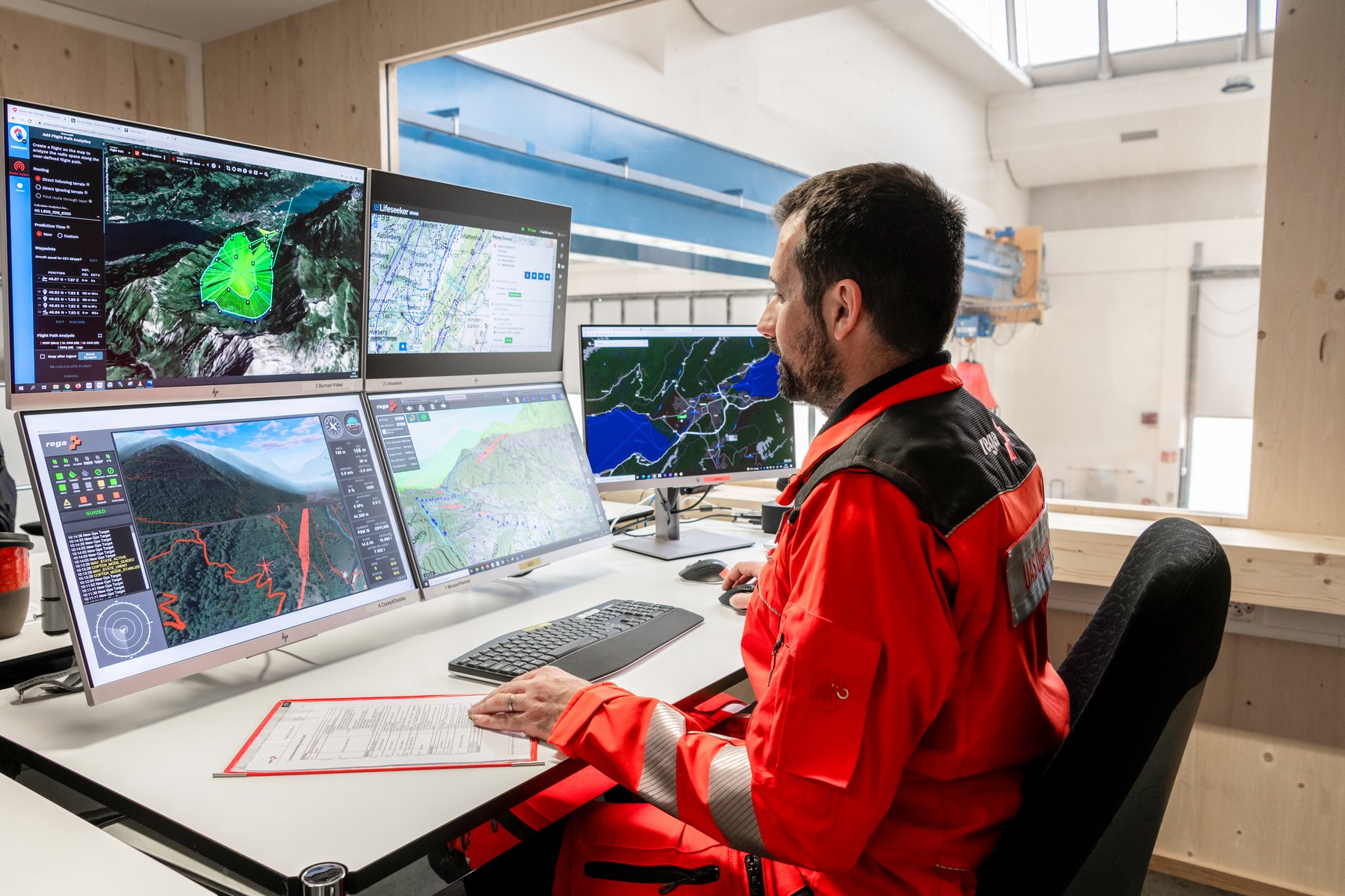 Das Drohnensystem wurde in den letzten Jahren stetig weiterentwickelt. Nach umfangreichen Tests bei unterschiedlichsten Bedingungen und der erfolgten Feinabstimmung der einzelnen Komponenten, kann die Rega-Einsatzzentrale die Drohne mit der Bezeichnung «RGA-UAV-T1A» seit letztem Herbst für Sucheinsätze aufbieten. Die Drohne kann grossflächige Suchgebiete selbständig abfliegen und ist mit verschiedenen Sensoren ausgestattet: Mit einem Mobilfunkdetektor, dem sogenannten «Lifeseeker», ortet die Drohne Mobiltelefone auf einige Meter genau, auch wenn im Suchgebiet kein Mobilfunkempfang besteht. Zusätzlich wurde für die Drohne die sogenannte «Human Detection Pipeline» entwickelt. Dieses System erkennt auf den Echtzeit-Bildern der Wärmebildkamera Menschen im Gelände dank eines selbstlernenden Algorithmus automatisch und übermittelt die Daten an den Rega-Spezialisten, der von seinem Arbeitsplatz aus in der Einsatzbasis Wilderswil die Suche und den weiteren Rettungseinsatz koordiniert.