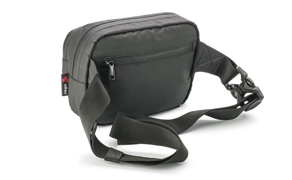Bauchtasche mit Hauptfach, Fronttasche und verstecktem Reissverschlussfach auf der Rückseite. Das geräumige Hauptfach bietet Platz für das Wichtigste, das im Alltag, zum Reisen oder Wandern, benötigt wird. Die separate kleine Fronttasche ist perfekt für jene Utensilien, die schnell zur Hand sein müssen.