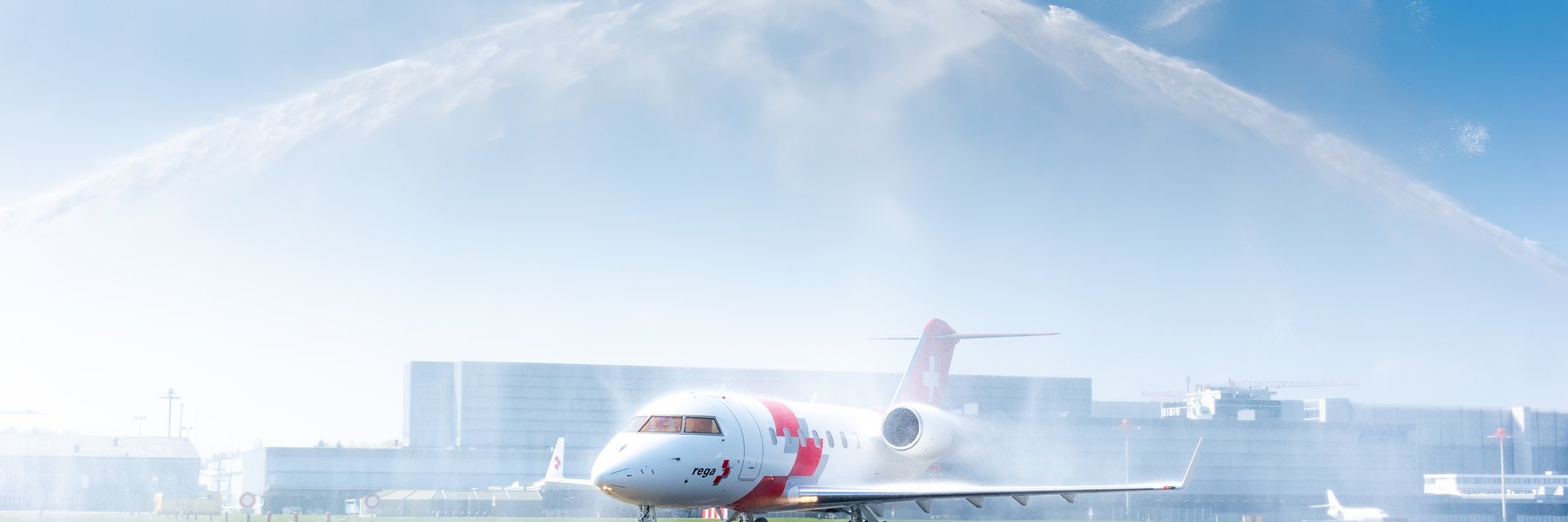 À l'occasion de la conférence de presse annuelle de la Rega, le nouvel avion-ambulance de la Rega de type Challenger 650 du constructeur canadien Bombardier a atterri aujourd'hui à 11h20 à l'aéroport de Zurich. Il a été accueilli sous le traditionnel jet d'eau des pompiers. L'avion-ambulance immatriculé HB-JWA est le premier des trois nouveaux avions-ambulance qui compléteront la flotte de la Rega d'ici à la fin 2018. Pour Ernst Kohler, CEO de la Rega, la nouvelle flotte représente un investissement pour le futur : "Le nouvel avion est l'un des avions-ambulance civils les plus modernes au monde ; nous nous assurons ainsi de pouvoir porter une assistance professionnelle et fiable aux patientes et patients dans le monde entier pour les prochaines années." La Rega parvient à clôturer ce projet dans les délais fixés et dans le budget prévu de 130 millions de francs au total pour les trois aéronefs.